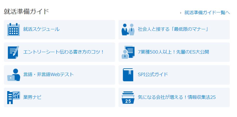 The website provides many joint information sessions (合同説明会) and web seminars. Even if you live in the countryside and you can’t go to Tokyo or other big cities, you can get the same information with web seminar.